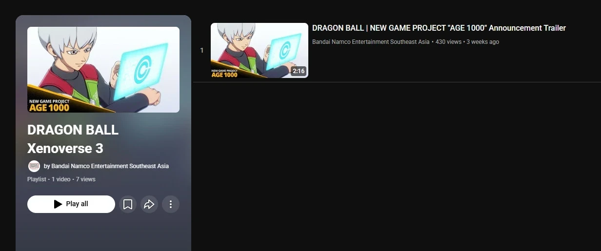 Обложка: скриншот Dragon Ball Xenoverse 2Новая игра Bandai Namco может оказаться следующей частью серии Xenoverse. По крайней мере на это намекают неосторожные действия самой компании. Кто-то случайно выложил трейлер Dragon Ball Age 1000 в плейлист под названием Xenoverse 3.
