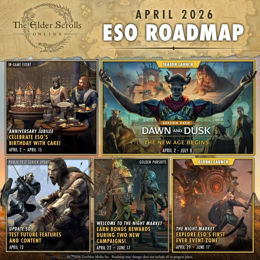 Уже сегодня разработчики The Elder Scrolls Online проведут трансляцию 2026 Seasons Direct, посвящённую планам на текущий год. А следующий эфир ожидается 9 апреля.